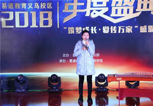 易道教育浙江義烏旗艦校肖甜校長發表致辭,回顧校區2018年所取得的進步與成績,展望2019,不忘初心,繼續前行。