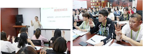 在易道總部師苑夢工場的課堂上,總能看見參訓老師們認真演算手腦速算的身影。