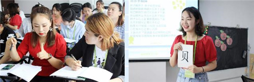 培訓課堂上的互動交流生動有趣,為了更好的請總部導師指點現場教學,參訓老師們爭先恐后的走上講臺,展示教學課堂。
