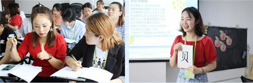 培訓課堂上的互動交流生動有趣,為了更好的請總部導師指點現場教學,參訓老師們爭先恐后的走上講臺,展示教學課堂。