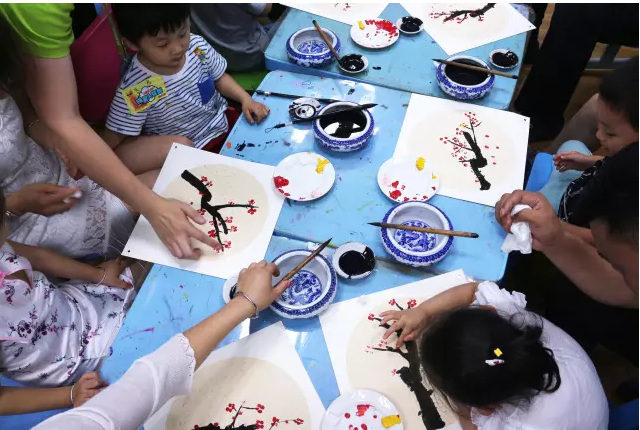 涂鴉、國畫合二為一,家長和孩子齊聚一堂揮筆潑墨,創(chuàng)意新思維。