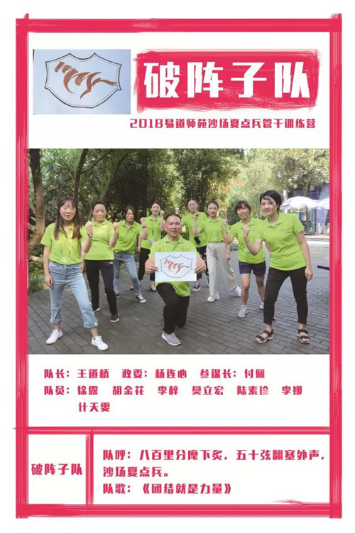本次夏點兵的每支隊伍,從領導層的推選、隊伍的命名、logo的創作,到隊形的設計展示、隊歌的確立,無一不包含著每一位隊員的精力與心意。