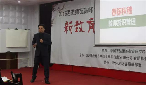 2016年12月03日,2016易道師苑高峰論壇暨“新教育·新營銷”全國研討會(菏澤站)于菏澤市牡丹區(qū)明珠大酒店正式拉開帷幕。以菏澤市為中心的易道部落校長們以及對幼兒教育事業(yè)發(fā)展感興趣的各界人士相聚于此,中國家庭孵化教育工程首席導師、中國手腦潛能教育研究院執(zhí)行院長、易道教育集團常務副總經(jīng)理、副校監(jiān)季永剛先生、易道教育集團加盟事業(yè)部市場拓展部部長張紹輝先生蒞臨會議現(xiàn)場,現(xiàn)場座無虛席,氛圍高漲!