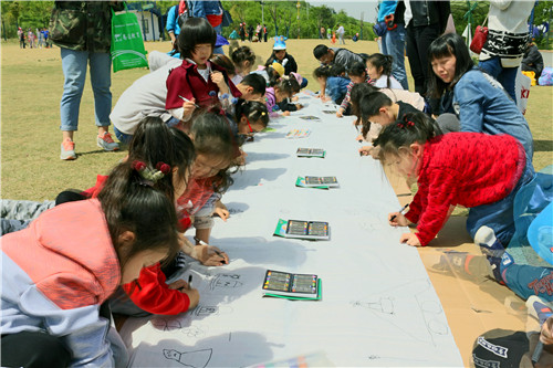 面對春意盎然的大自然,那時那景最適合畫一幅詩情畫意的佳作,繪畫寫生、百米長卷就此展開!孩子們忙著寫生作畫,家長們可沒閑著,小道開坦克正熱情上演。