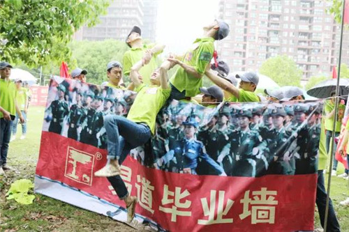 雨水可以淋濕戰士們的衣服,泥水可以浸濕戰士們的鞋襪,但是一切風雨無法阻擋易道人的步伐。在這樣惡劣的環境之下,“陸地龍舟”、“信任背摔”、“沖破封鎖線”、“易道畢業墻”這些項目,不僅考驗著四個團隊之間的競爭力,也考驗著易道這個大集體的合作力、凝聚力、發展力,風雨無阻、同甘共苦、目標一致、彼此信任、配合默契,這正是完美團隊的最好體現!