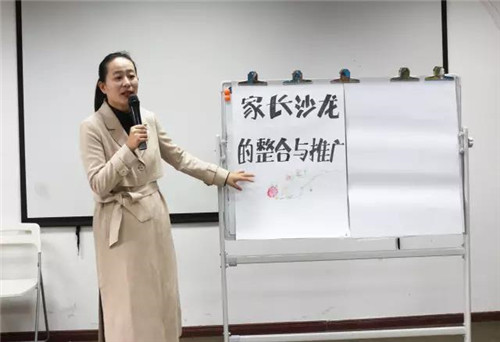 04月12日上午,由易道教育集團巴布嚕研發培訓中心總監盛潔女士給各位營訓校長們帶來“家長沙龍”的整合與推廣的專題講座。話題的選擇、家長沙龍的形式、溝通的方式方法和要素等,互動、游戲、分享,與其說這是一場培訓,倒不如說這是在聊天,盛潔老師用這種培訓形式來告訴校長們,用輕松愉悅的氛圍才能更好的走進家長的心!