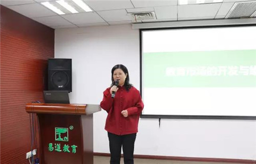 04月13日上午,由易道教育集團副總經理、加盟運營事業群總監季穎女士為各位營訓校長們帶來“教育市場”的開發與維護的專題講座。教育市場的經營模式、如何有效的開發與維護……季穎老師用多年管理者的實戰經驗,為在場的校長們傳授心德秘笈,傾囊相授,也讓各位校長們受益匪淺。