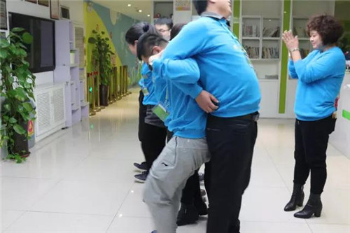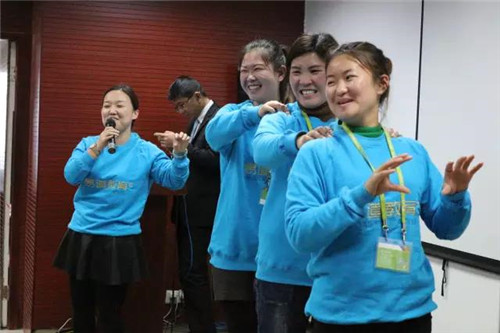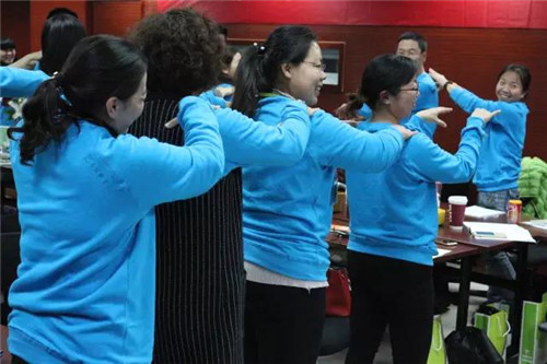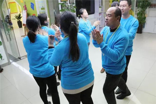 自然是鍛煉團隊的凝聚力,凝成一股繩,如臂使指。立春老師帶領全體參營校長首先進行了一個集體游戲“我們是一個人”,一樣的口號,不同的動作,所有人是否能整齊劃一的做到呢?看圖說話!