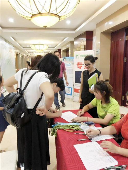前來參加2019易道師苑高峰論壇陽江站活動的校長、老師們絡繹不絕,在簽到臺前排隊等待進場。