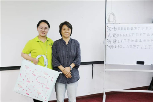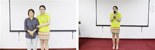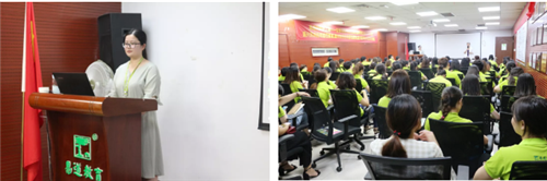 易道教育集團(tuán)人力資源部部長(zhǎng)季燕老師為成功轉(zhuǎn)正的老師們頒發(fā)了易道徽章。