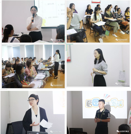 總部講師用專業(yè)嚴謹、溫和悉心的講解,幫助老師們一遍遍摳課。而除了摳課、聽課,參訓老師們還走上臺前一一進行試課。