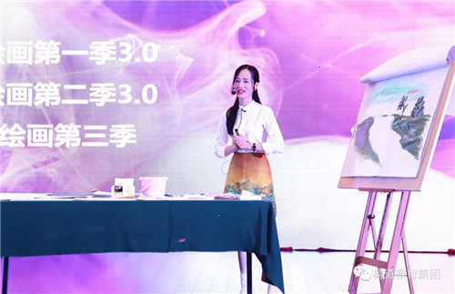易道旗艦學校事業群書畫教研部徐玲老師,帶來《手腦印象涂鴉課程秀》教學。徐玲老師現場生動教學,將繪畫與故事結合起來,手工與圖畫融合,讓寶貝在賞味故事的同時,自己也能動手畫風景。