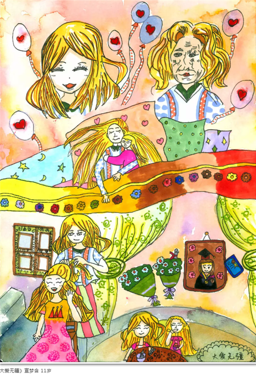 畫面內容豐富,顏色鮮艷,主體物突出,造型把握到位,內容情節飽滿,畫面裝飾感強烈,形與形之間的疏密對比把握準確,真情流露出自己的內心世界,體現了真、善、美,讓觀賞者產生共鳴。