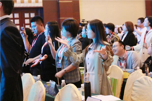 手腦速算課程秀開始前,盛老師帶大家穿越到手腦速算的課堂,全體校長都變身成“小朋友”,和盛老師一起完成這堂課。課堂正式開始啦,所有“小朋友們”伸出小手,握握拳,抖一抖,眨眨眼睛,拍拍手。手腦操“收南瓜”,小手預備,預備完畢,現場所有的“小朋友們”都跟著盛老師一起做起了手腦操。