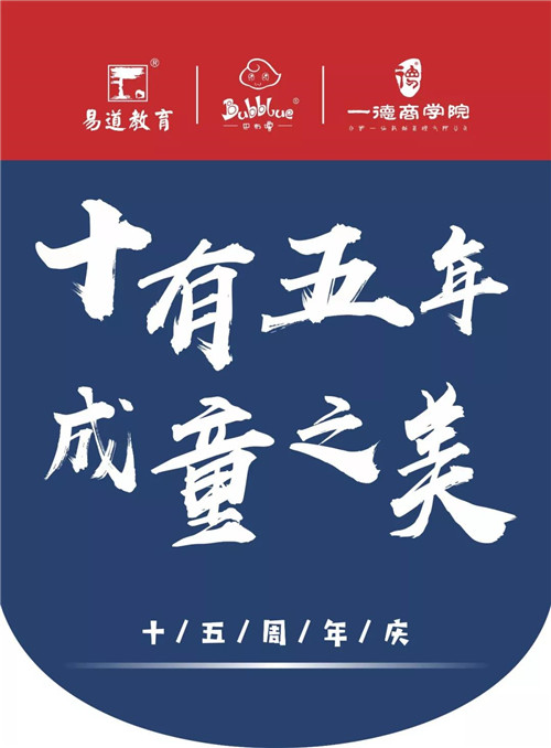 易道教育集團總部以“十有五年,成童之美”為主題,設計了15周年慶吊旗海報,全國各部落可以總部設計吊旗源文件為模板裝飾校區環境,全國一起整齊劃一,共慶易道15周歲生日。
