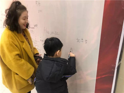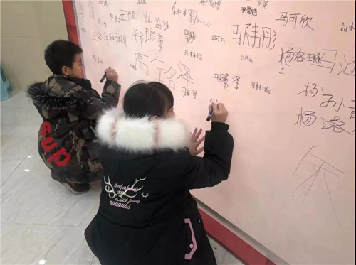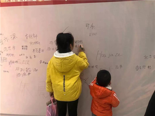 小朋友和家長們紛紛在簽名墻上寫下自己的名字、合影留念。