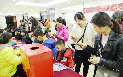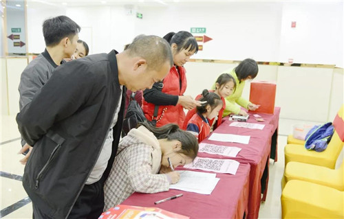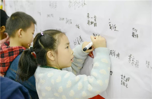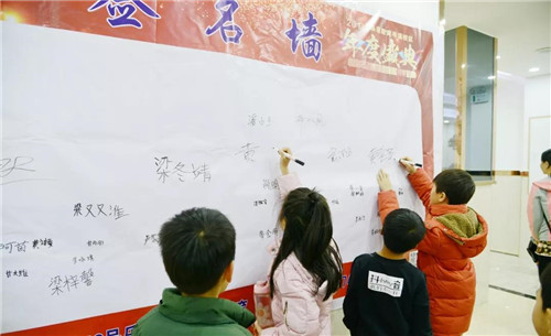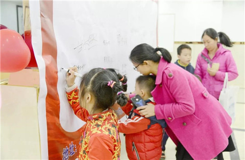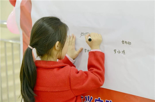 家長帶著孩子一早就到了會場,隨后小朋友們在簽到處填寫資料信息,紛紛在簽名墻上寫下自己的名字。