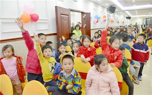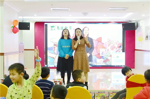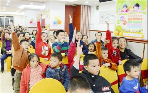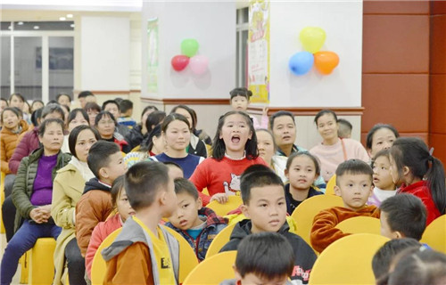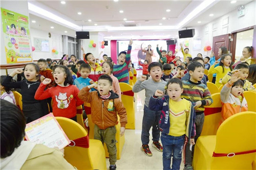不止臺上的小朋友,臺下的小朋友們是跟著動起來了呢。在主持人的組織下,臺下的一些家長和小朋友們也上臺來玩游戲了,現場請五名小朋友上場pk識字與閱讀班級,進行散卡表演,上臺即有禮物相送哦~