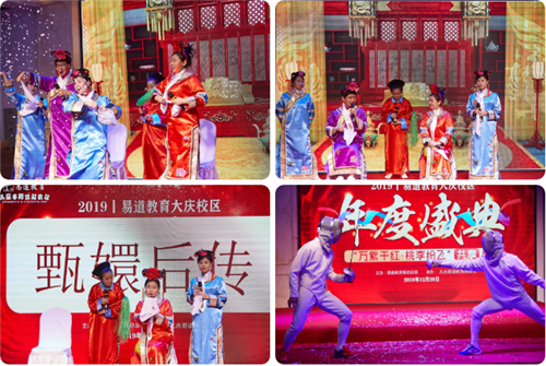 易道教育黑龍江大慶部落全體教師帶來歡快的開場舞,一下子將現場的氣氛帶動起來。小品《甄嬛后傳》、擊劍等一系列表演也不甘示弱,憑借精彩演出贏得臺下陣陣掌聲。