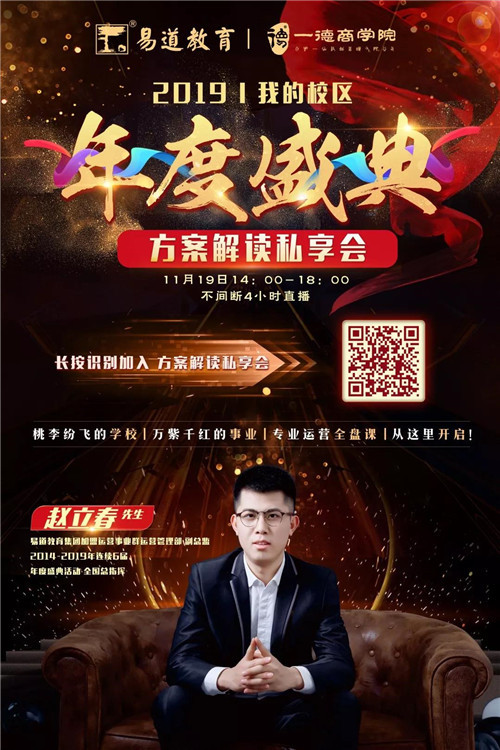 2019年11月,易道教育集團總部運營管理部副總監趙立春老師在方案解讀私享會上,為全國部落校長分享如何成功舉行年度盛典。