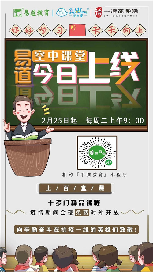 在這種背景下,2月25日,易道教育基于『手腦教育』小程序端的空中課堂上線。并且在疫情期間,免費面向全國兒童開啟。
