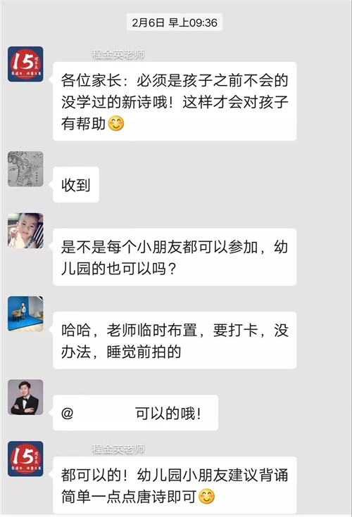 一周的時間里,孩子與家長每日在群內(nèi)打卡,孩子們在鍛煉了口才的同時,還學(xué)會了堅持,變得有恒心有毅力。