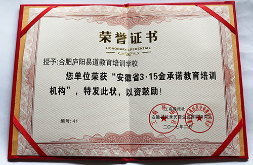 熱烈祝賀易道教育旗艦總校(合肥市廬陽區(qū)銀泰中心校區(qū)),榮獲“安徽省3·15金承諾教育培訓(xùn)機(jī)構(gòu)”!首先要感謝工商導(dǎo)報(bào)社和安徽省優(yōu)秀民營(yíng)企業(yè)推展組委會(huì)對(duì)易道教育的認(rèn)可;其次還要感謝所有家長(zhǎng)及易道寶貝們對(duì)易道教育旗艦總校的支持與信任。