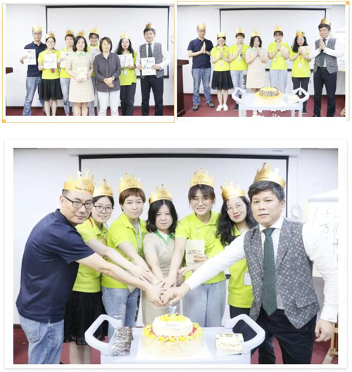 例會最后一項,員工生日會環(huán)節(jié)的到來將全場氛圍推向高潮。祝媽媽為七月份過生日的老師們送上了親筆寫的生日賀卡,祝愿本月過生日的老師們生日快樂,歲歲長歡愉,年年皆勝意。