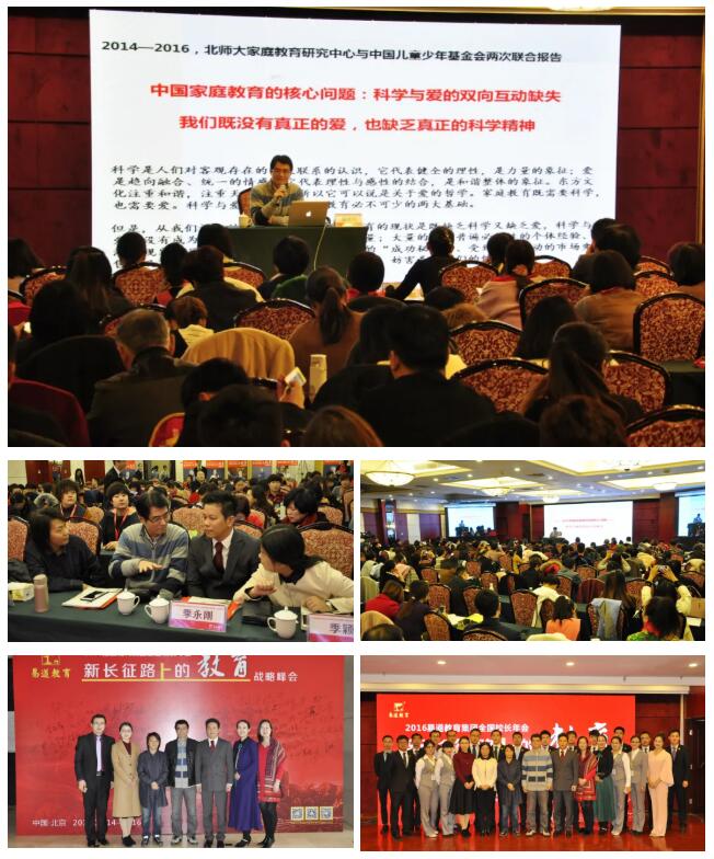 易道教育集團從2016年就與北京師范大學家庭教育研究中心深度合作,曾在2016年全國校長年會上邀請到北京師范大學教育學部教授、教育學博士、家庭教育研究中心主任、家庭教育專業博士研究生導師、中國教育學會家庭教育專業委員會常務理事、《中國教育報》家庭教育問題顧問、中央電視臺“百家講壇”節目特邀專家、“新家庭教育”倡導者陳建翔教授蒞臨現場,開展了關于家庭教育的專題講座《愛與科學:新家庭教育的四重境界》,全場500多位全國各易道部落校長們引發共鳴,深刻意識到家庭教育的重要性,立志在平時校區教學中,高度重視家庭教育,多開展家長課堂,家長線下沙龍,線上家庭教育公益課等。