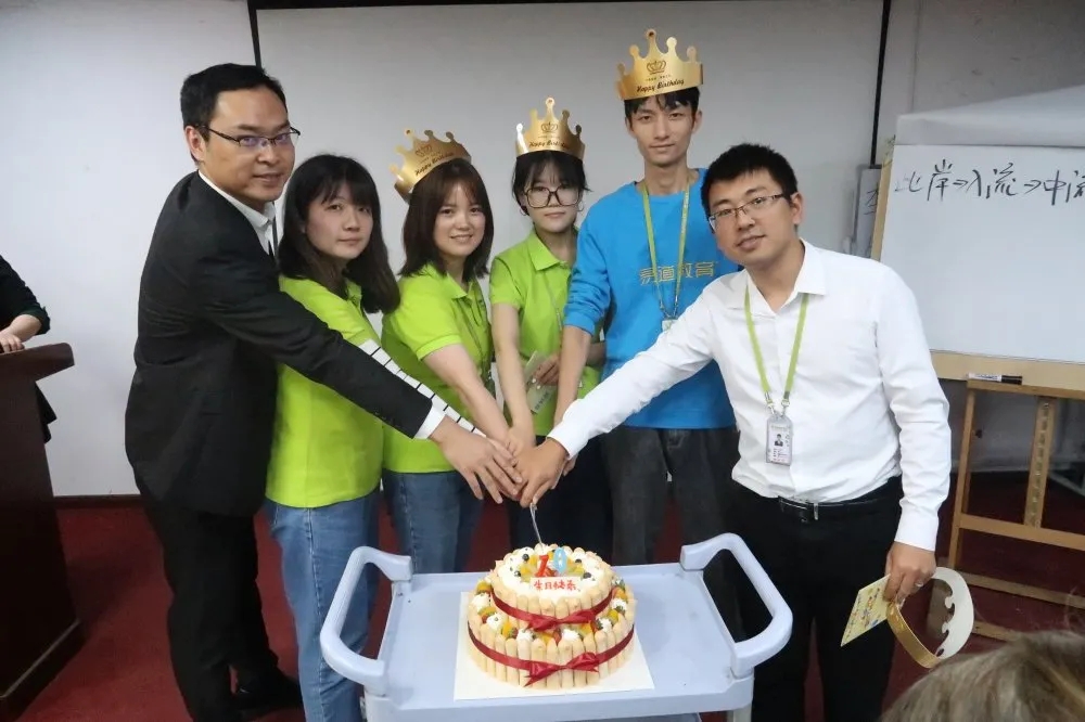 例會的最后,員工生日會環節的到來將全場氛圍推向高潮。祝媽媽為十月份過生日的老師們送上了親筆寫的生日賀卡,祝愿本月過生日的老師們生日快樂,年年歲歲福相伴,朝朝暮暮喜平安。