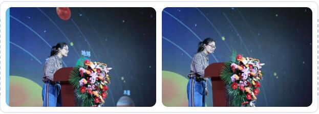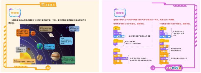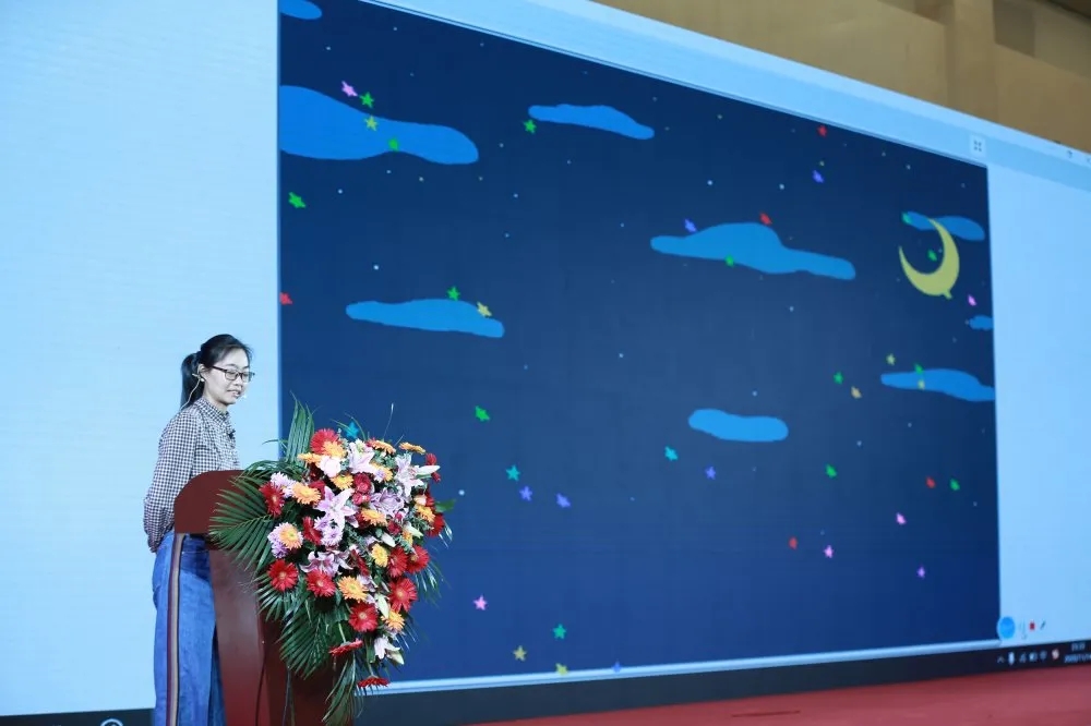 楊陽老師以“人工智能—小小編程家Scratch”教材里的某一課內容為參會嘉賓們現場做起示范,課堂上如何帶領學生拖拽積木,通過編程讓銀河系九大行星找到自己的軌道自己的家。