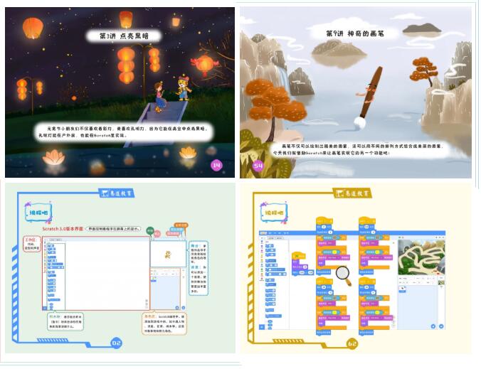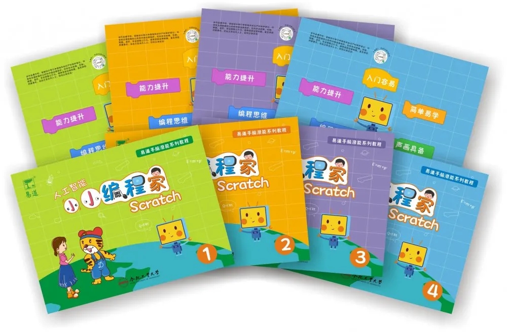 易道教育推出的《人工智能—小小編程家Scratch》系列教程,包含四個學期的學習內容,每學期13次課,其教學內容涵蓋生活實踐、科學之旅、藝術設計、人工智能等,理論與實踐相結合,滿足人工智能科創教育實踐和STREAM1創新教育實踐需求,實現寓教于樂、著重素質及多學科相融合。