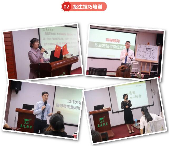易道師苑招生技巧培訓,導師為校區招生現場支招,講述課程顧問的處理技巧,做百戰百勝的招生能手。