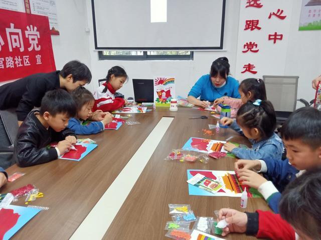 易道教育老師教孩子們做愛國愛黨紐扣畫。
