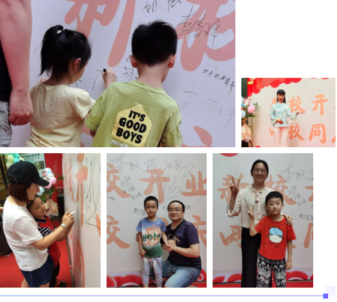 開業當天,錦湖校區十分熱鬧,家長帶領小朋友們陸續到達校區,簽名墻、校區參觀、咨詢課程、參加游戲、抽取福利……