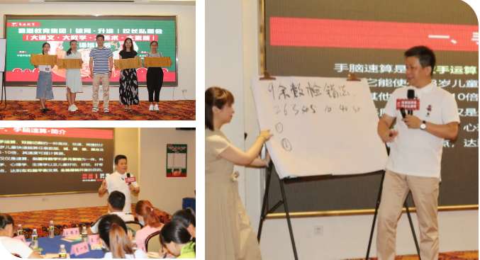 專家導師季永剛先生用淵博的知識,詼諧的語言,易懂的話術,深刻的例子為與會校長、師者帶來《手腦速算課程及教學解析》、《大語文課程及教學解析》、《賞識教育&素質教育·課堂教學實操三板斧》等主題講座,現場解析易道王牌課程矩陣,深入淺出,俘獲教培人的心。