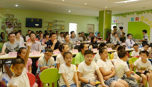 開業之際,易道總部領導親赴淮南旗艦學校,將開業現場氛圍推向高潮。鏗鏘有力的演講聲,家長朋友的鼓掌聲,孩子們的雀躍歡呼聲,聲聲匯聚成淮南旗艦學校暑期招生人氣。