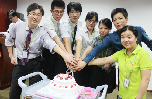 2013年07月07日,易道大家庭相聚在師苑會議室召開易道七月例會。首先是家庭新成員的自我介紹,隨著易道的發展,不斷有新的家人來到易道,熱烈歡迎你們的加入;緊接著是六月份優秀員工的選舉,經過三輪激烈的PK,最終由加盟事業部昝明煌老師摘得桂冠;其次是總經辦祝老師和季老師對本次例會的總結發言,慷慨激昂的言辭,使熱血青春的易道團隊更加充滿力量;最后為七月份過生日的老師們舉辦了溫馨的生日會,本月例會在搖曳的燭光和美好的祝福聲中圓滿結束。