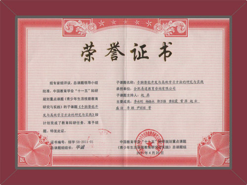 中國教育學會“十一五”科研規劃重點課題榮譽證書