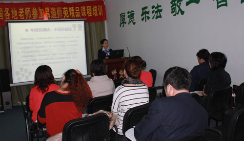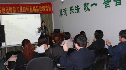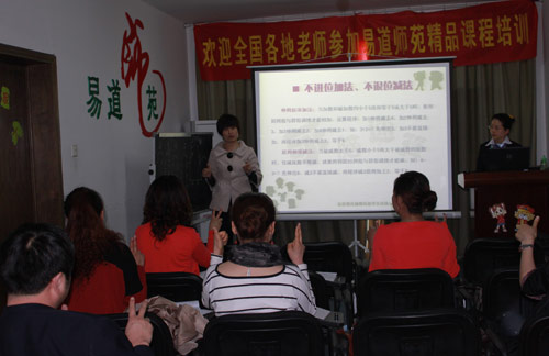 2011年4月21日新一期的手腦速算師資培訓在總部開展。整個培訓現場氣氛火熱,幾天的緊張培訓,來自全國各易道部落的老師們認真聽講、記筆記,不斷練習手腦速算技巧,與培訓老師不斷地互動,以及逐個老師進行試課,總部培訓的老師嚴格要求每位老師,整個場面緊張而又活潑,互動融洽。