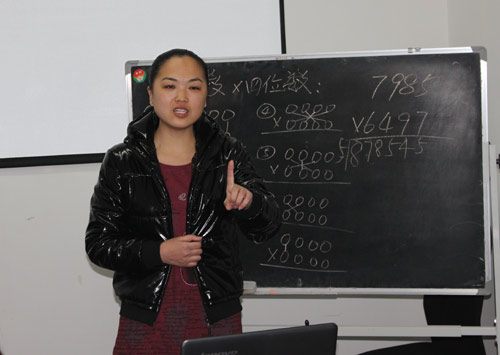 2011年2月20日新一期的手腦速算師資培訓在總部開展。本次參加培訓的老師主要來自:山西運城、天津市、遼寧省錦州市。整個培訓現場氣氛火熱,幾天的緊張培訓,來自全國各易道部落的老師們認真聽講、記筆記,不斷練習手腦速算技巧,與培訓老師不斷地互動,以及逐個老師進行試課,總部培訓的老師嚴格要求每位老師,整個場面緊張而又活潑,互動融洽。