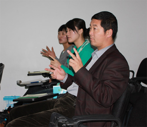 2010年11月10日,易道教育手腦速算11月1期培訓在合肥總部展開。參加本次培訓的老師來自:安徽省東至縣、黑龍江省哈爾濱市、黑龍江省依安縣、山西省忻州市、江西省共青城市、甘肅省高臺縣。雖然培訓期間天氣陰沉,但絲毫不影響我們老師們的學習熱情,整個培訓課堂互動融洽,各位老師在培訓課堂上時而沉思,時而認真記筆記,時而積極發言,不時傳來老師們的歡笑聲,整個培訓課程在歡樂認真的氣氛中進行著。