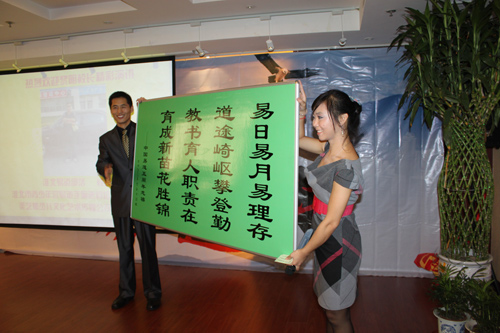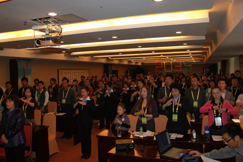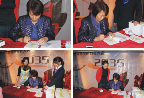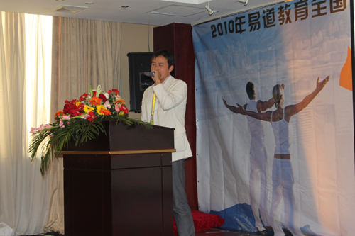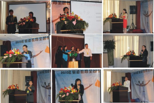 在第三屆中國手腦速算大賽舉辦圓滿成功之后,易道教育于2010年10月17日在合肥圣大國際大酒店舉辦了易道教育全國校長大會,隨著各地易道部落的校長和精品老師陸續(xù)進(jìn)場,在易道教育創(chuàng)始人及總經(jīng)理祝老師致歡迎詞后,大會徹底拉開帷幕。當(dāng)震撼的音樂響起,現(xiàn)場播放了主題視頻“2035——易道行”,跟著視頻大家一起憧憬了2035年易道美麗的光景,當(dāng)我們看到易道教育走遍世界的各個角落,作為每一個易道人,驕傲自豪之情油然而生,而后便陷入了深深的感動和美好的憧憬當(dāng)中。在主題視頻接近尾聲時(shí),呈現(xiàn)在大家面前的是一段由教學(xué)部程老師自編自導(dǎo)的主題特色舞蹈,現(xiàn)場或欣賞或驚嘆。緊接著由易道教育運(yùn)營總監(jiān)季永剛老師向參會老師發(fā)表了主題演講:“2035—我們的綠色易道”,展示了易道的昨天和今天,并對未來易道的發(fā)展提出了戰(zhàn)略性的規(guī)劃,季老師的演講給所有參會人員留下了深深的思考。演講結(jié)束后,易道教育的總經(jīng)理祝老師與所有參會校長進(jìn)行了“牽手2035”手模印儀式,并贈送《易道行》書籍且合影。