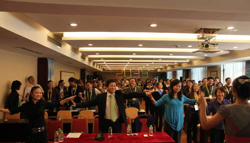 大會現(xiàn)場氣氛非常熱烈,全體參會人員正在進(jìn)行易道團(tuán)隊(duì)操展示