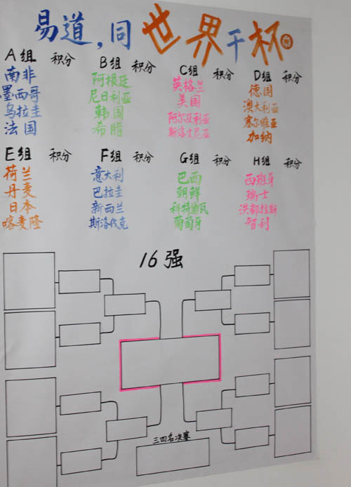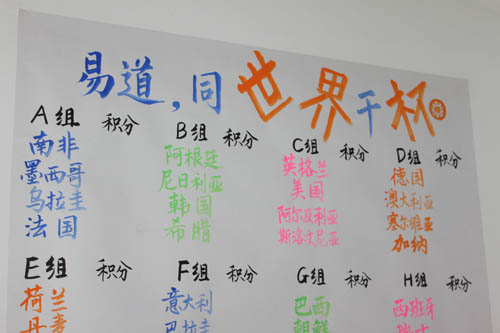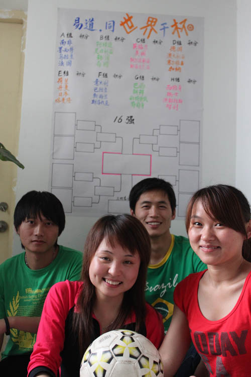 2010年南非世界杯將于6月11日晚拉開序幕,四年一度的足球世界杯將火熱降臨,對于喜愛運動的人們來說世界杯是一次歡樂的盛會。易道教育在世界杯的日子里,開展“易道,同世界干杯!”活動,在總部張貼出世界杯賽程海報,為易道員工每天進行實時賽況展示。