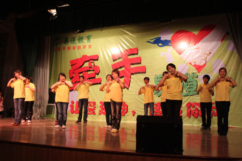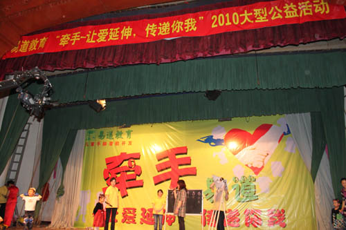 5月22、23日,易道教育籌劃已久的“牽手—讓愛延伸,傳遞你我”2010年大型公益活動在瑤海教學基地舉行,數千名合肥地區易道教育學員及家長前來參加本次活動。本次易道教育牽手合肥肥東聾啞學校,共同打造時跨兩天的愛心盛會。