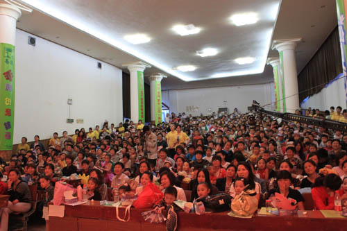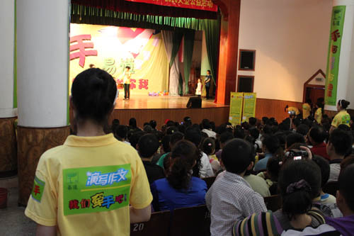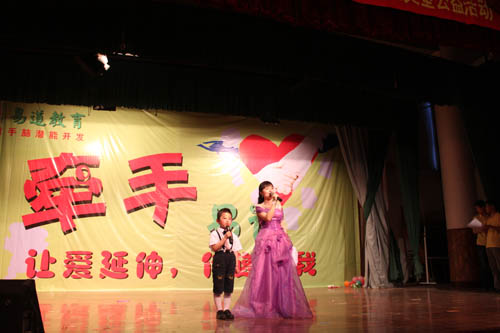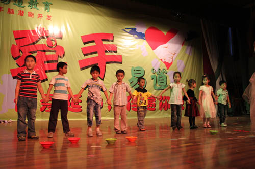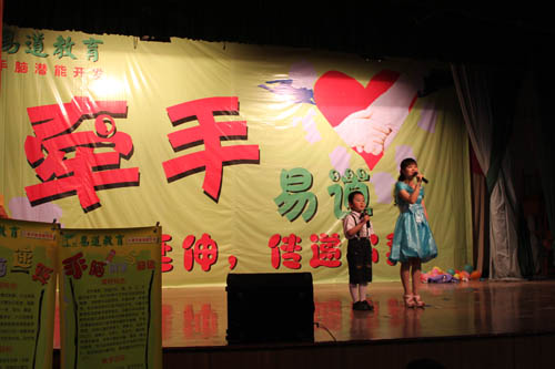 此次活動主題為“牽手“,主旨在于傳遞身邊的愛,“讓愛延伸,傳遞你我”。活動持續22、23日兩天,活動開始前,易道在瑤海教學基地樓下大廳展開畫布,號召孩子手印簽名,傳遞彼此的愛心。活動在下午兩點鐘開始,易道合肥地區學員及老師們準備了多項精彩節目,引得會場內數千名觀眾掌聲連連,現場氣氛熱烈。來自合肥肥東聾啞學校的孩子們的節目感人至深,打動了現場的每一個人。活動最后易道教育老師號召家長和孩子們牽起手,傳遞愛心,活動在相親相愛一家人的歌聲中結束。