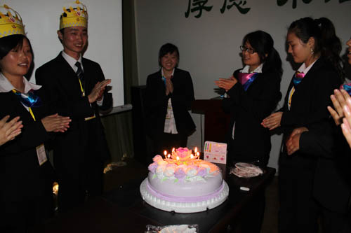 十月十三日,易道中國總部召開了一次不同尋常的例會,易道教育與兩位員工一起共度在十月里迎來的生日。例會上易道研發(fā)培訓(xùn)部向全體員工展示了他們奮斗了一個日夜,連夜趕制的展現(xiàn)易道四年來風(fēng)雨征程的一段視頻,視頻完整表現(xiàn)了易道教育在這四年來取得的成就,鼓舞著大家繼續(xù)奮進,為易道教育的未來共同努力。看完視頻后,全體員工一同分享了早已準(zhǔn)備好的大蛋糕,大家一起唱生日歌祝福過生日的兩位同事,還有我們的易道,祝福易道——我們的生命列車永遠(yuǎn)地飛馳下去,駛向更明亮的明天!