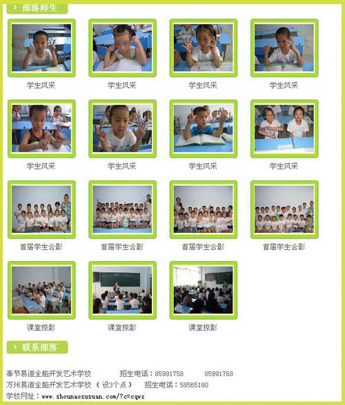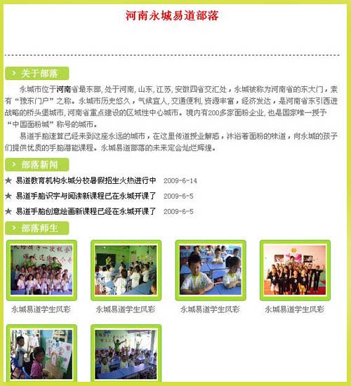 易道教育中國手腦速算加盟網,為每一個易道部落都提供了,一個有著自己獨立域名,可以發布部落新聞、部落介紹、部落師生照片和部落聯系方式的網站。在各個易道部落在當地蓬勃發展的同時,各個易道部落網站建設也在如火如荼的進行中,對于易道教育來說,這是一項無聲的大型數字工程?,F在我們向大家展示幾個不同部落的網站一角。
