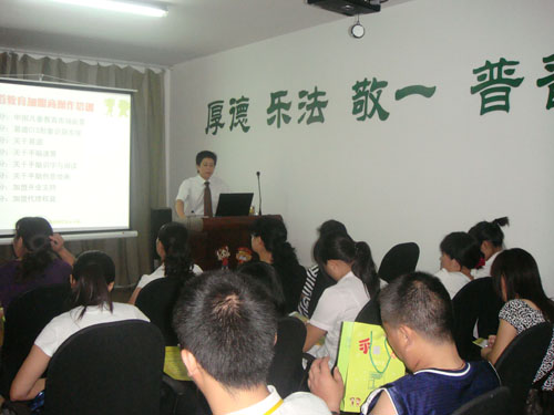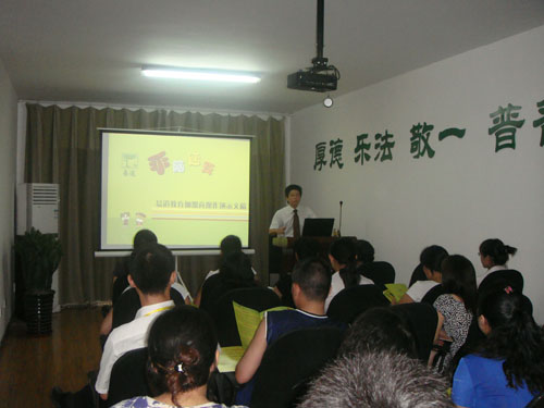 七月二十二日清晨,易道中國總部迎來了來自全國各地數十家加盟商,遠道而來的老師們參加了易道中國總部每天例行的朗誦“弟子規”,合唱了易道隊歌“相親相愛的一家人”。隨后,培訓活動在易道中國總監季永剛老師主講的課程中拉開了序幕。